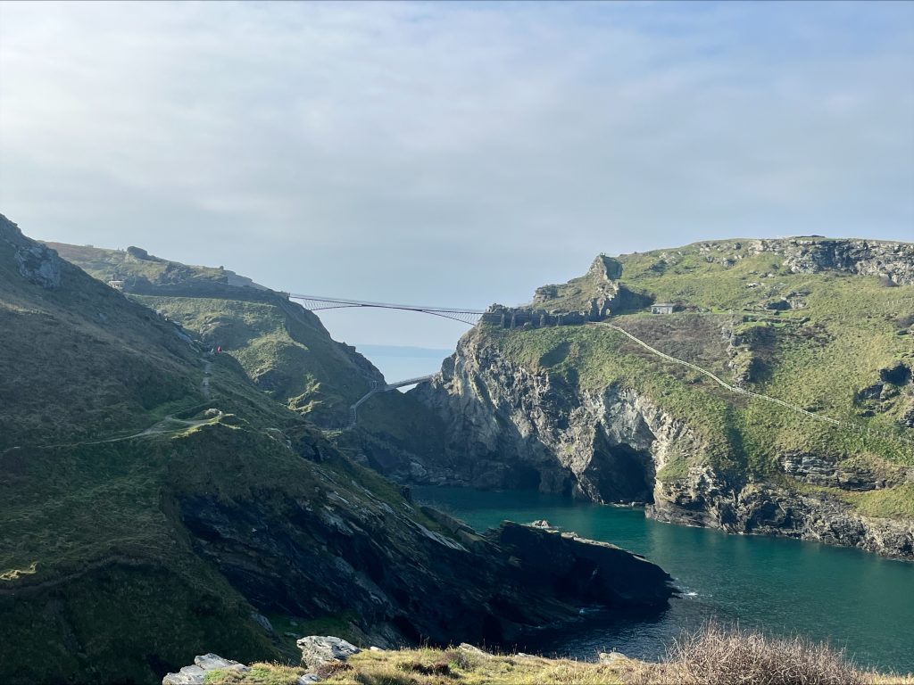 Golden light spilled over the cliffs. Shoes laced. Flasks filled. We set off from Wilko through Tintagel Main Street, legs already protesting.